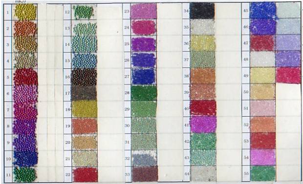 單色:無(wú)色珠、紅珠、黃珠、綠珠、藍(lán)珠、紫珠(或根椐用戶(hù)要求制造) |